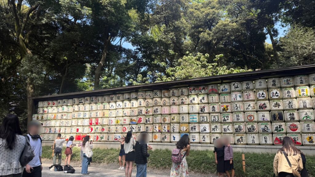 全国・世界から奉納された酒樽が並ぶ一角があります。